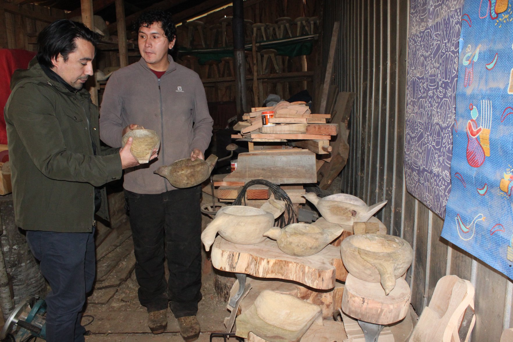 FOTO: José Neihual, Sello Artesanía Indígena, en su taller en Carirriñe, Panguipulli.