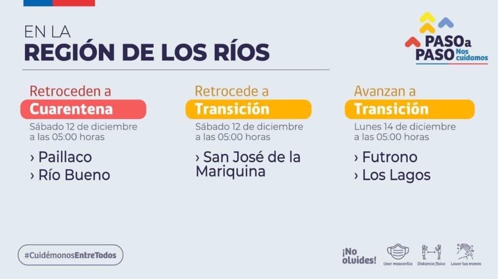AHORA) En PautalosRios.cl : MARIQUINA retrocede a Transición, La comuna de #RíoBueno y #Paillaco retroceden este sábado 12 a fase 1 CUARENTENA TOTAL del plan Paso A Paso.