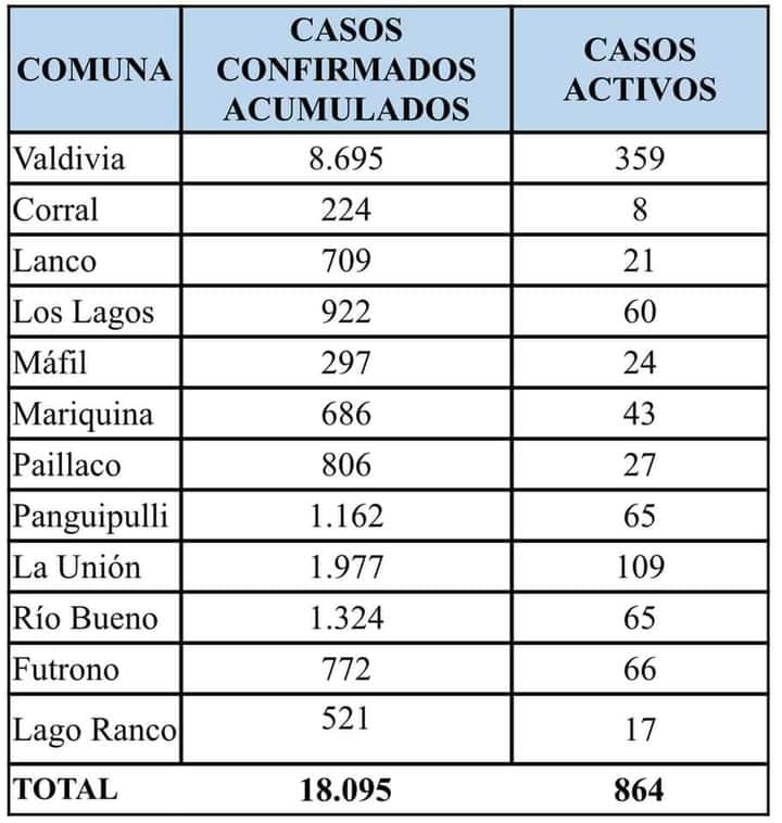 De esta manera, la Región de Los Ríos a la fecha mantiene 864 casos activos por residencia.
