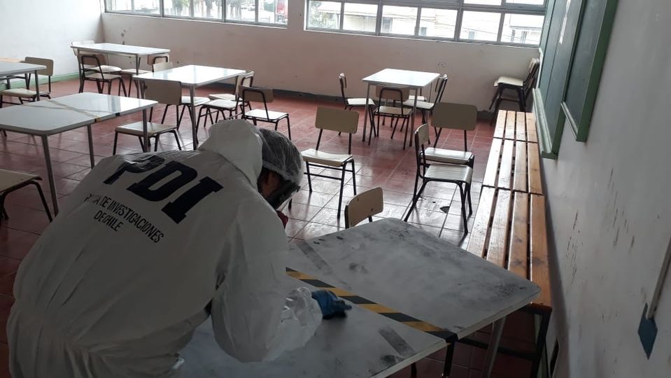 De acuerdo a las pericias en el sitio de suceso, los detectives manifestaron que se levantó evidencia biológica e impresiones dactilares, por lo que el trabajo de los peritos del Lacrim de la PDI será fundamental para dar con el paradero de él o los autores de este robo en lugar no habitado que afectó al Centro de Educación Integrada de Adultos (CEIA) Luis Moll Briones, ubicado en calle Santiago Bueras en Valdivia.