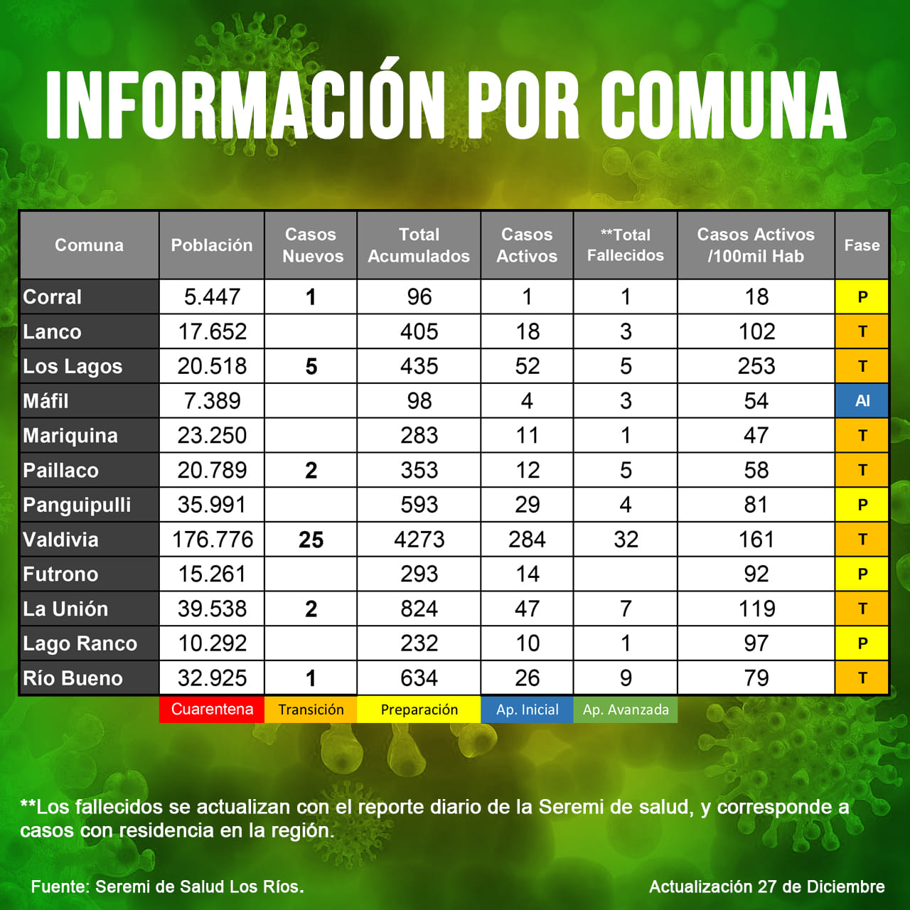 Ahora) En PautalosRios.clRadio: En el resumen de la jornada el Minsal reportó 38 casos nuevos en Los Ríos:
