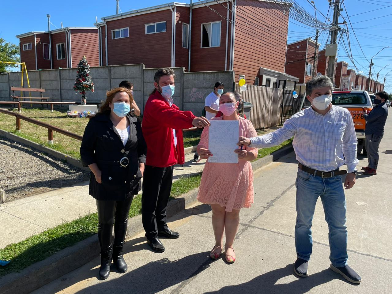 Como regalo de navidad las 67 familias del Proyecto Fuerzas Unidas recibieron, en la puerta de su casa, el título de dominio que los acredita desde hoy como dueños indiscutibles de sus viviendas. Se trata de un proyecto que se ejecutó gracias al Fondo Solidario Elección de Vivienda-CNT del Ministerio de Vivienda y Urbanismo, más aportes de la municipalidad de Valdivia y que permitió a los beneficiarios cambiar radicalmente su vida, dejando atrás los años de campamento y allegados.