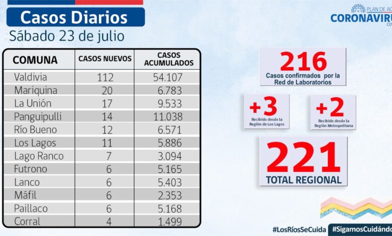 REPORTE] El SEREMI de Salud, Dr.José Llambías, informó que hoy se reportaron 221 nuevos casos de COVID-19 en Los Ríos.