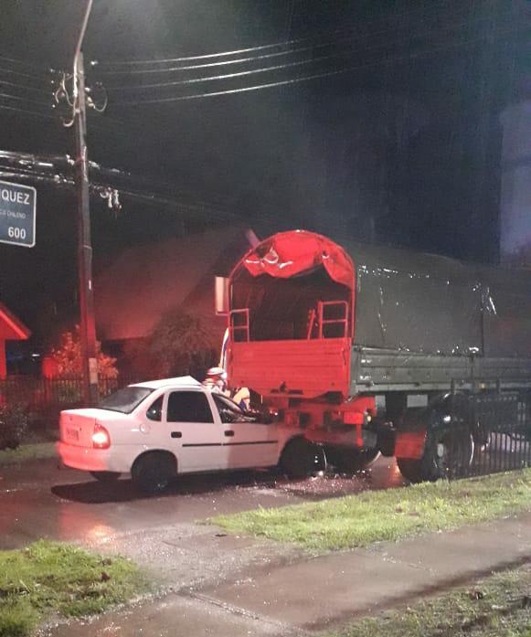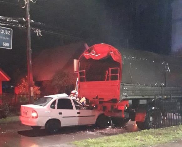 BREVES POLICIAL….A las 18.35 hora, en calle Camilo Henríquez, esquina Manuel Bulnes de Paillaco, automóvil Chevrolet Corsa, patente TW-2929 chocó parte posterior de camión militar, patente EJTO-5094. Por su responsabilidad en el accidente, Carabineros de la Subcomisaria de Paillaco detuvo al conductor del vehículo menor por conducción en estado de ebriedad, lesiones y daños, IMPUTADO PASARA MAÑANA A CONTROL DE DETENCIÓN.