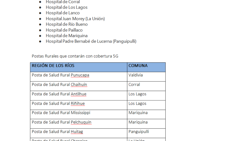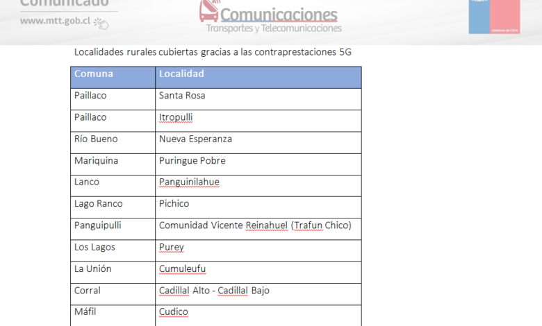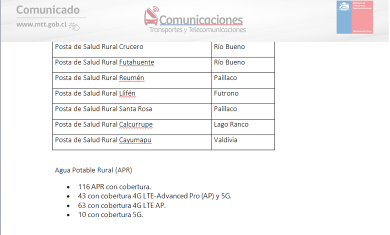 Desde ahora, las empresas de telecomunicaciones podrán implementar esta tecnología a lo largo del país y con ello, ofrecer planes comerciales a quienes cuenten con dispositivos compatibles · En Los Ríos y como parte de las contraprestaciones exigidas en el contrato del Estado con las compañías, estas deberán brindar cobertura 5G a 12 localidades, 9 Hospitales, 16 Postas Rurales y 116 APR