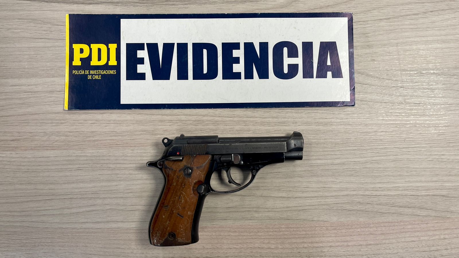En el marco de un operativo realizado por la Brigada Antinarcóticos y Contra el Crimen Organizado de la PDI Valdivia el pasado jueves 04 de mayo, en la cual se detuvo a diez personas relacionadas al delito de microtráfico y disparos injustificados difundidos ampliamente en un video por redes sociales, se logró recuperar un arma la cual habría sido botada por uno de los detenidos al momento de su captura. El arma, una pistola Prieto Beretta calibre .380 tenía encargo por extravío desde el año 2014, estando inscrita a nombre de Augusto Pinochet Ugarte, mismo nombre que se encuentra tallado en el puño del arma, la cual será sometida a peritajes balisticos para determinar su utilización.