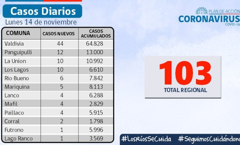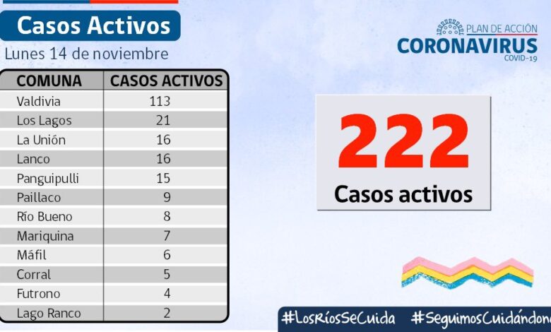 A la fecha, hay 222 casos activos, de los cuales 113 corresponden a la comuna de Valdivia y 21 a la comuna de Los Lagos.