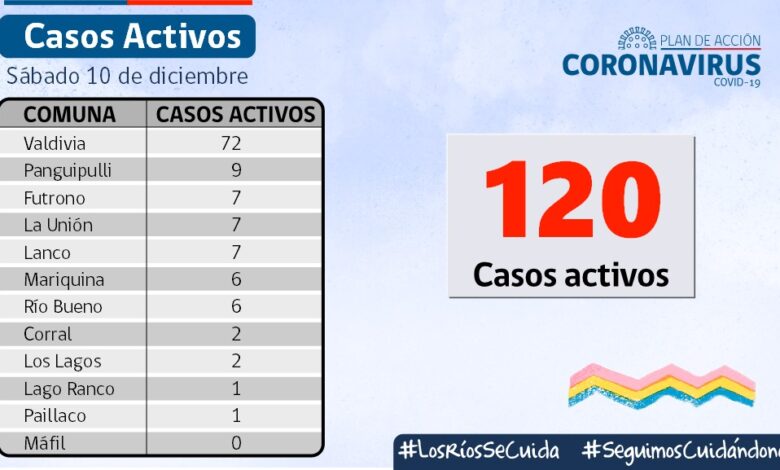 REPORTE] La SEREMI de Salud, informó que hoy se reportaron 62 nuevos casos de COVID-19 , a la fecha, hay 120 casos activos, de los cuales 72 corresponden a la comuna de #Valdiviacl y 9 a #Panguipulli