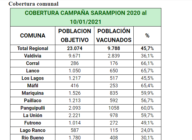 Con el objetivo de evitar riesgos y aumentar la seguridad de los niños y niñas que deben ser vacunados contra el Sarampión, el equipo del Programa Nacional de Inmunizaciones de la Seremi de Salud, a partir del 18 de enero realizará visitas a domicilio para inocular a los menores entre 13 meses a 5 años 11 meses 29 días que aún no han recibido la dosis correspondiente.