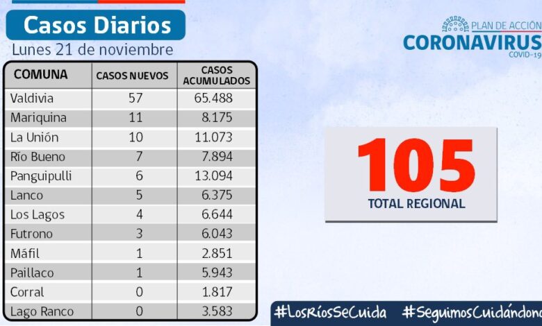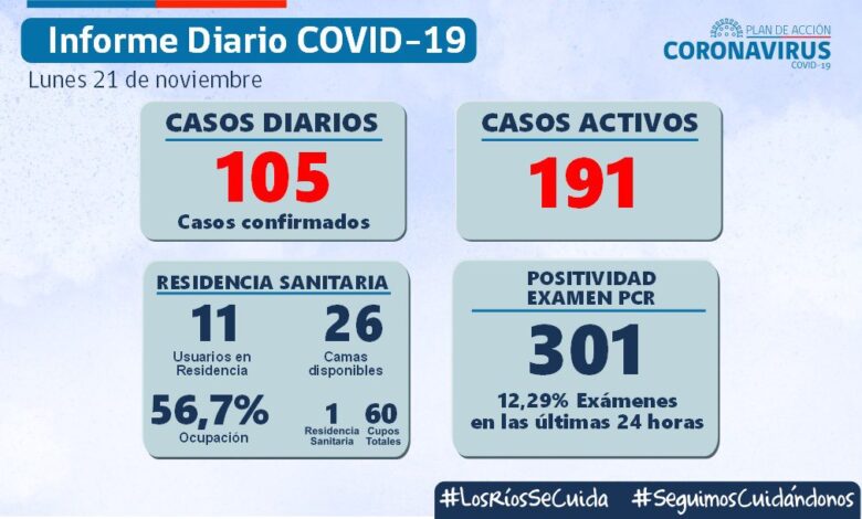 Autoridad sanitaria informó 105 casos nuevos , la positividad de un 12,29% en los Ríos