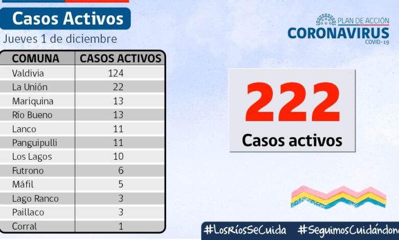 REPORTE] La SEREMI de Salud, informó que hoy se reportaron 174 nuevos casos de COVID-19. A la fecha, hay 222 casos activos, de los cuales 124 corresponden a la comuna de #Valdiviacl y 13 a la #Mariquina y 13 a #RíoBueno