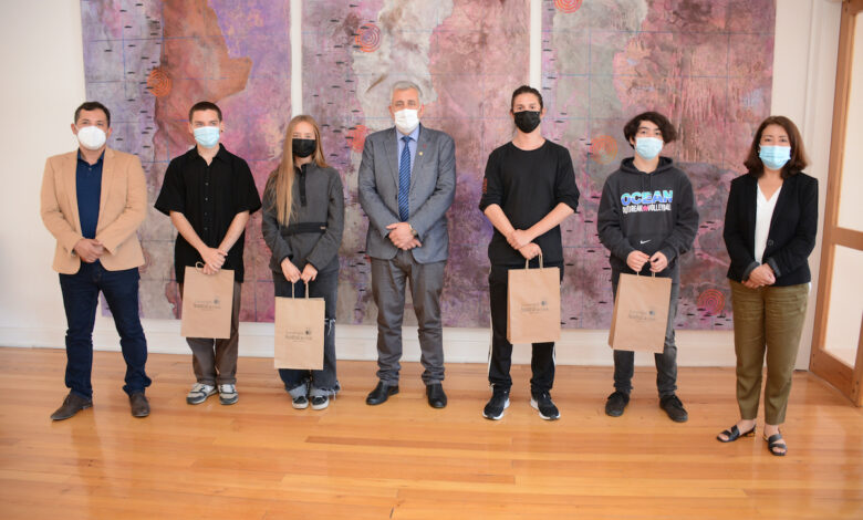La actividad tuvo lugar este miércoles 12 de enero y contó con la presencia de Domingo Monasterio (Colegio Aliwen) quien obtuvo puntaje nacional en la prueba de Comprensión Lectora con 850 puntos, Tomás Peña (Colegio Windsor School) quien destacó con el máximo nacional en la prueba de Matemáticas, Elisa Taboada (Instituto Alemán de Valdivia) quien obtuvo puntaje regional en Ciencias con 813 puntos, y Agustín Riesco (Instituto Alemán de Valdivia) con 835 puntos en la prueba de Historia y Ciencias Sociales. A nivel regional el mejor promedio PDT lo obtuvo Jacinta Toro (Instituto Alemán de Valdivia) con 809 puntos, quien no pudo asistir.