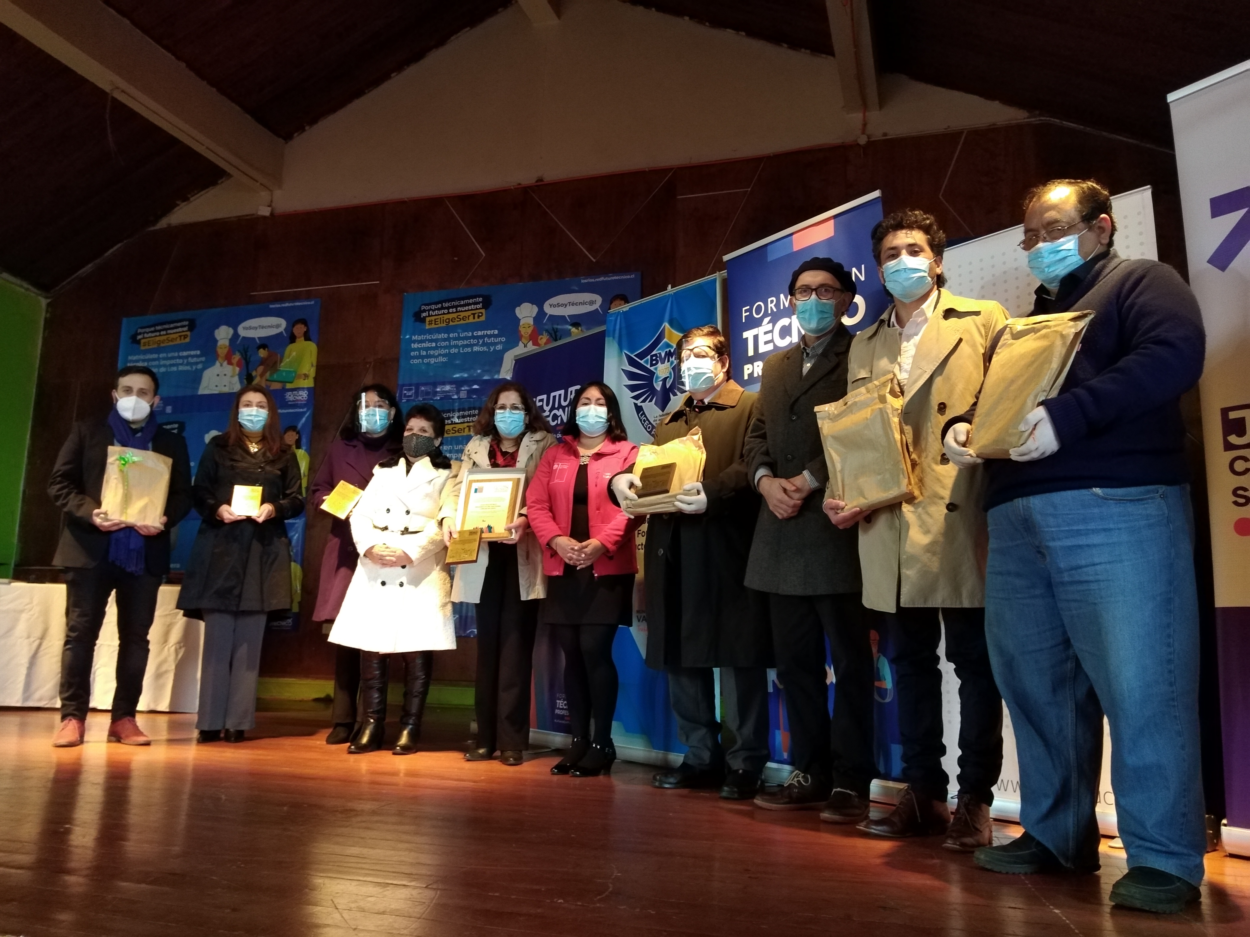 En la ocasión, se destacó el arduo trabajo que han desarrollado las comunidades educativas para continuar impartiendo las diferentes especialidades técnico profesionales, así como también a estudiantes meritorios, lo que se concretó por medio de galvanos a los representantes de los 33 establecimientos de enseñanza media TP.