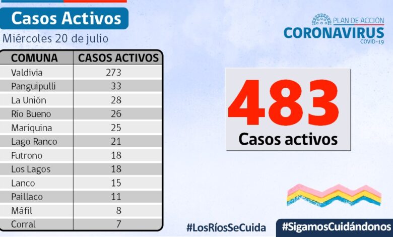 A la fecha, hay 483 casos activos, de los cuales 273 corresponden a la comuna de Valdivia
