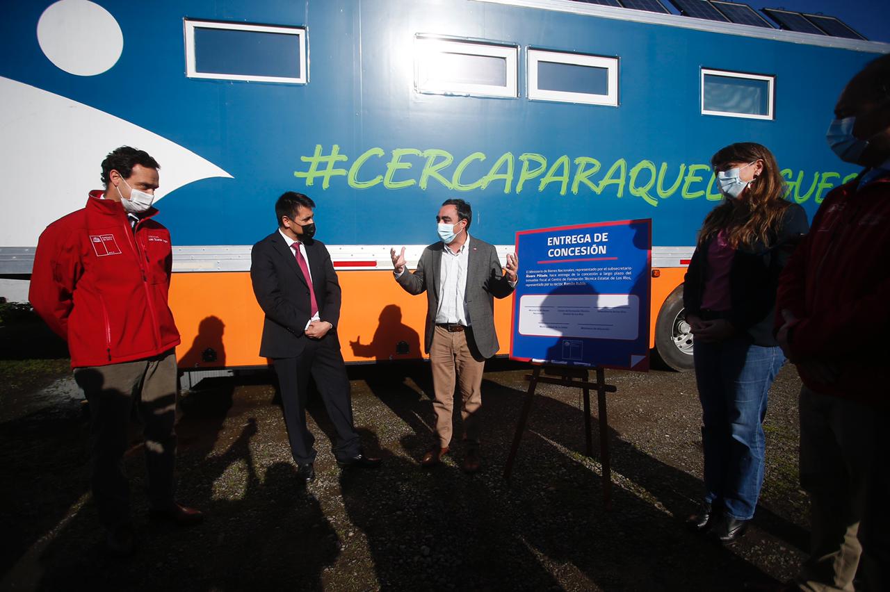 En su primera visita a la región de Los Ríos, el subsecretario de Bienes Nacionales, Álvaro Pillado junto al subsecretario de Educación Superior, Juan Eduardo Vargas, el Intendente de Los Ríos, Cesar Asenjo y autoridades regionales, realizaron la entrega de la concesión por 30 años de un terreno fiscal de 1,88 hectáreas de superficie al Centro de Formación Técnica Estatal (CFT) en la región de Los Ríos.