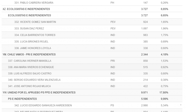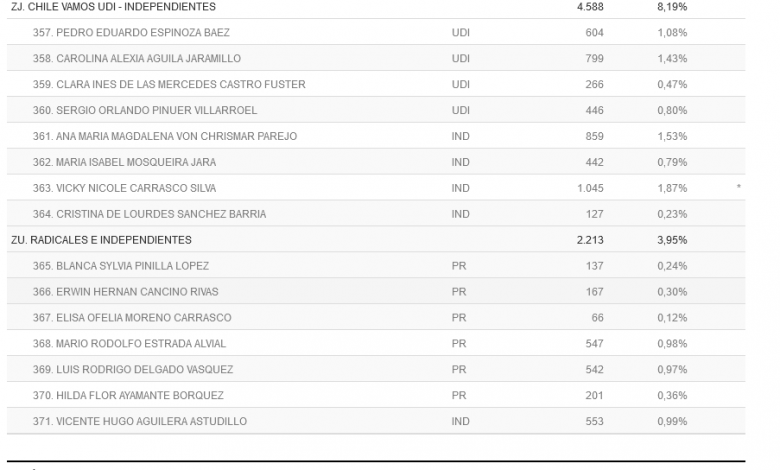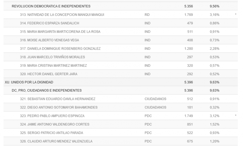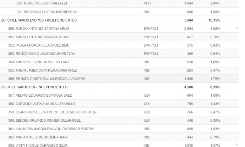 Revisa aqui los resultados parciales , nombres con asterisco indican candidatos electos.