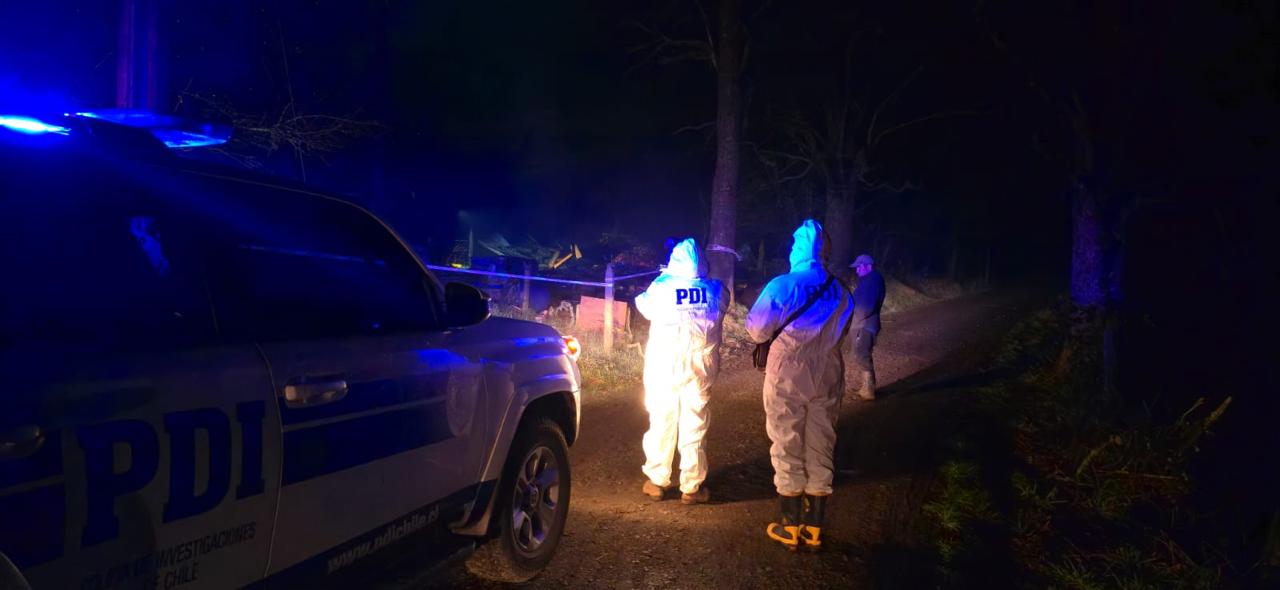 Ahora) PDI concurre hasta la comuna de Paillaco junto a peritos del Laboratorio de Criminalística Regional Los Ríos, por incendio con resultado de muerte en sector Santa Filomena de Paillaco.