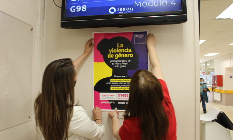 El material gráfico fue dispuesto en lugares estratégicos y de alta afluencia de público, a fin de acercar las herramientas dispuestas por el Ministerio de la Mujer y la Equidad de Género a funcionarias/os y la comunidad.