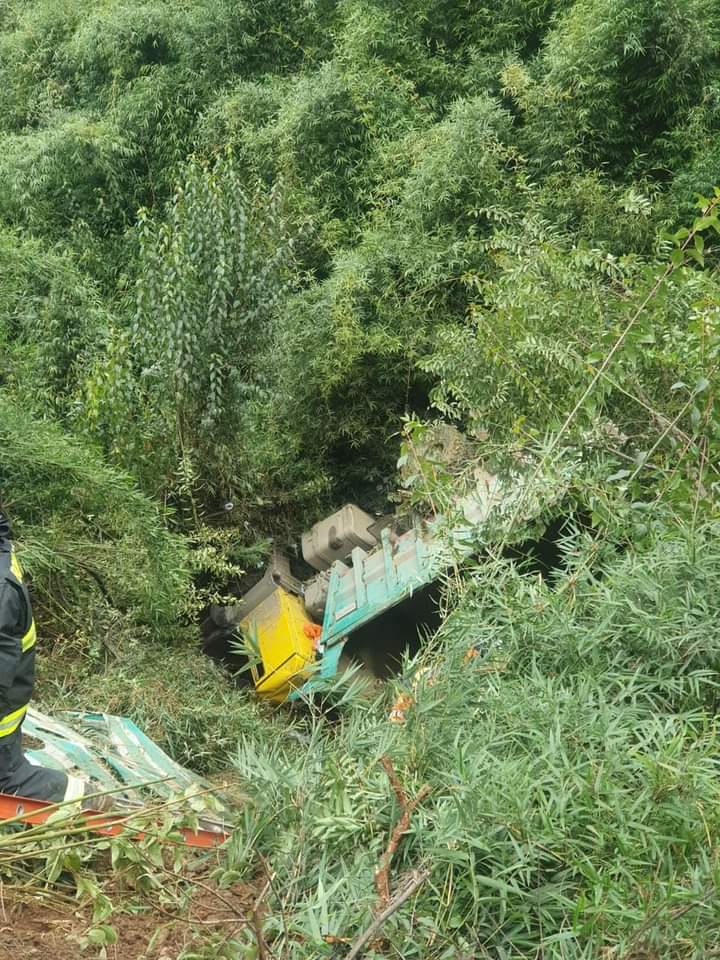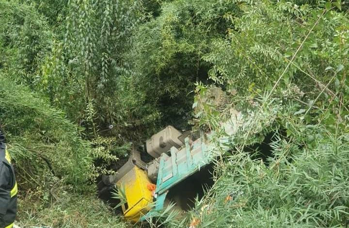 Camión se precipitó a una quebrada de 20 metros en el sector cuesta Pureo en Mariquina, una persona resulto fallecida y otra con lesiones graves.