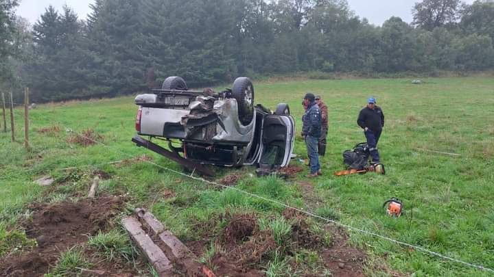 Camioneta volcó con 4 ocupantes en el cruce la culebra de Futrono hay dos personas lesionadas