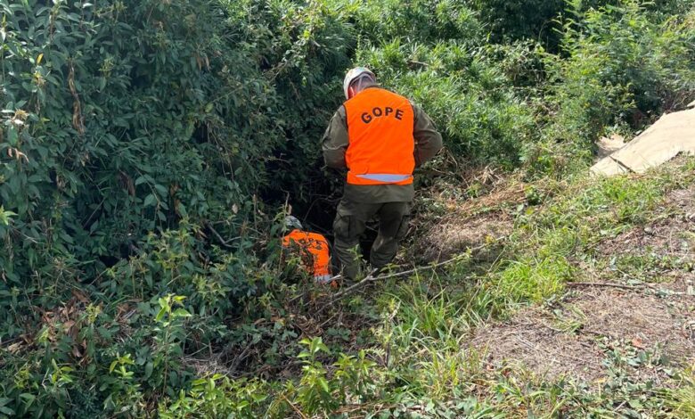 El Jefe de la Sección SIP, Subteniente Isaí Espinoza, precisó que el hallazgo se realizó a la altura del Poste 15 del sector El Arenal, en un lugar boscoso, tipo quebrada, mientras se realizaban labores de rastreo junto a la BH de la PDI.
