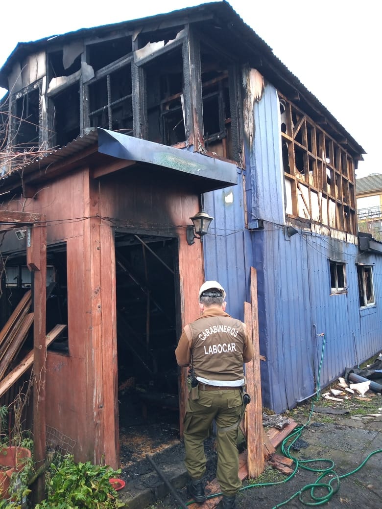 Carabineros del Labocar investiga incendio de esta madrugada en Valdivia.