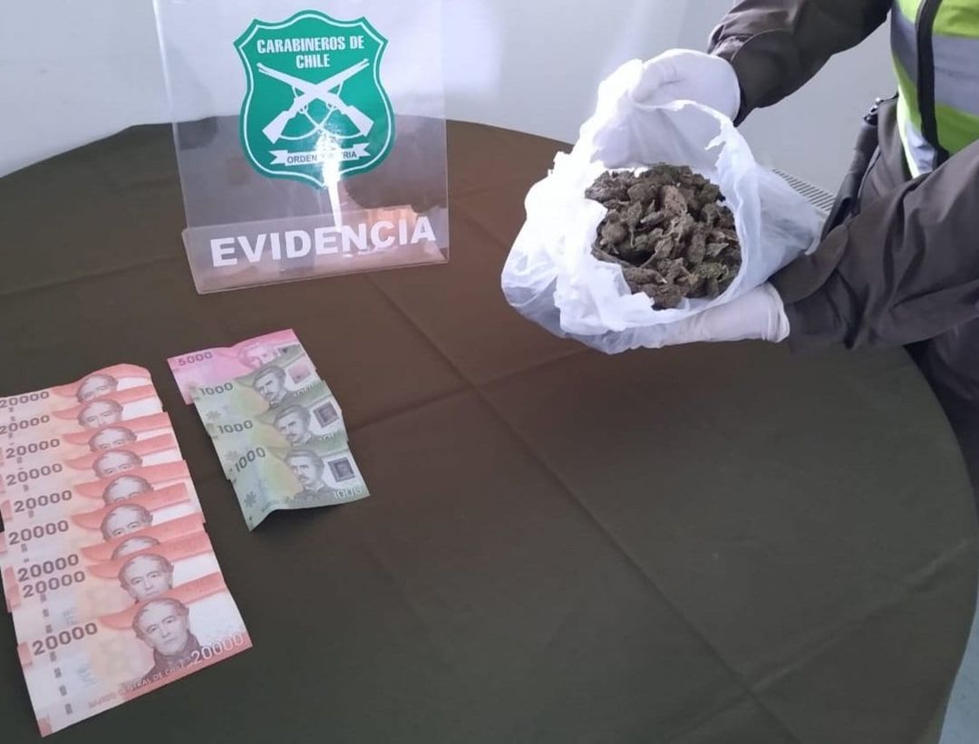 Carabineros del OS7 Valdivia detuvo a pasajero de bus que portaba mochila con 300 gramos de marihuana.
