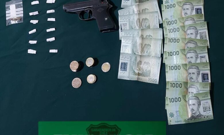 Policial  Valdivia : A raíz de control vehicular, Carabineros del Retén Niebla detiene a una persona que conducía vehículo con documentación falsificada, además se le incautó una pistola, droga y dinero efectivo.