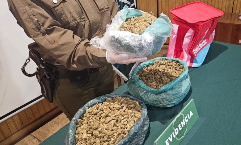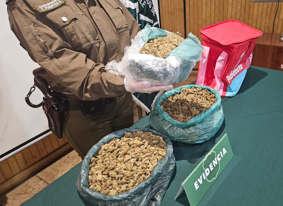 Carabineros incautó 2 kilos 661 gramos de Marihuana en Valdivia valorada en $24millones de pesos.