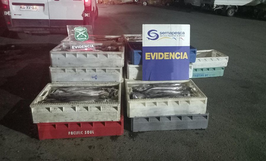 Carabineros y Sernapesca decomisaron 1033 kilos de merluza austral en el Km8 de la ruta T-65