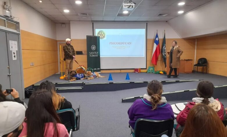 Una masiva asistencia tuvo la charla sobre terapia asistida por perros, organizada por la carrera de Terapia Ocupacional de la Universidad Santo Tomás (UST) en Valdivia y la Corporación Psicoeducan.