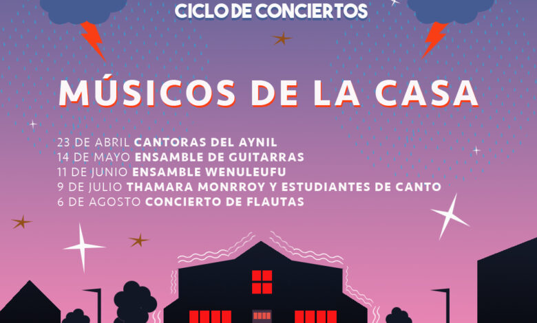 La primera temporada de “Músicos en Casa” comenzará con la presentación de las Cantoras de Aynil (23 de abril), para continuar con Ensamble de guitarras (14 de mayo), Ensamble Huenuleufu (11 de junio), Thamara Monroy y estudiantes de canto (09 de julio) y finalmente culminar con el Concierto de Flautas (06 de agosto).