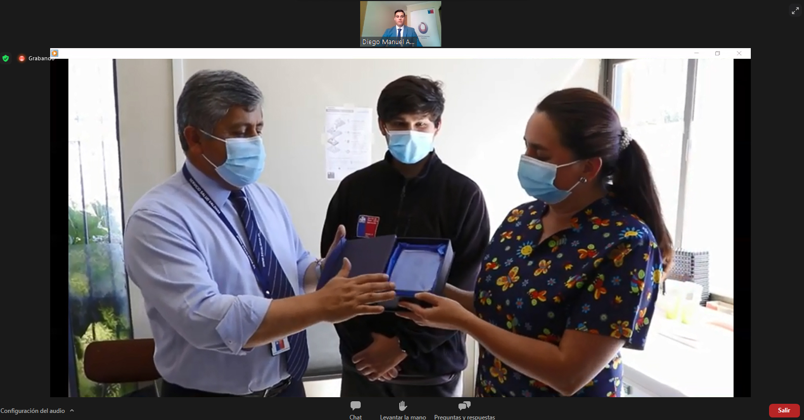 La ceremonia comenzó con un repaso a la historia y los acontecimientos más relevantes del establecimiento, para luego dar paso a un video –previamente grabado- en donde el director (s) del cesfam, junto con el director del SSV recorrieron las dependencias del Cesfam Externo entregando el reconocimiento “Héroes en pandemia” a los equipos de funcionarios.