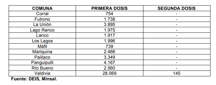 El Vocero destacó a la región de Los Ríos, donde 53.625 personas han recibido la primera dosis y 145 la segunda. “Estas cifras son alentadoras, estamos avanzando gracias al esfuerzo de todos y por eso agradecemos el compromiso y al mismo tiempo, quiero recordar que se siga respetando el calendario de vacunación y transmitir la confianza de que todos serán vacunados”.