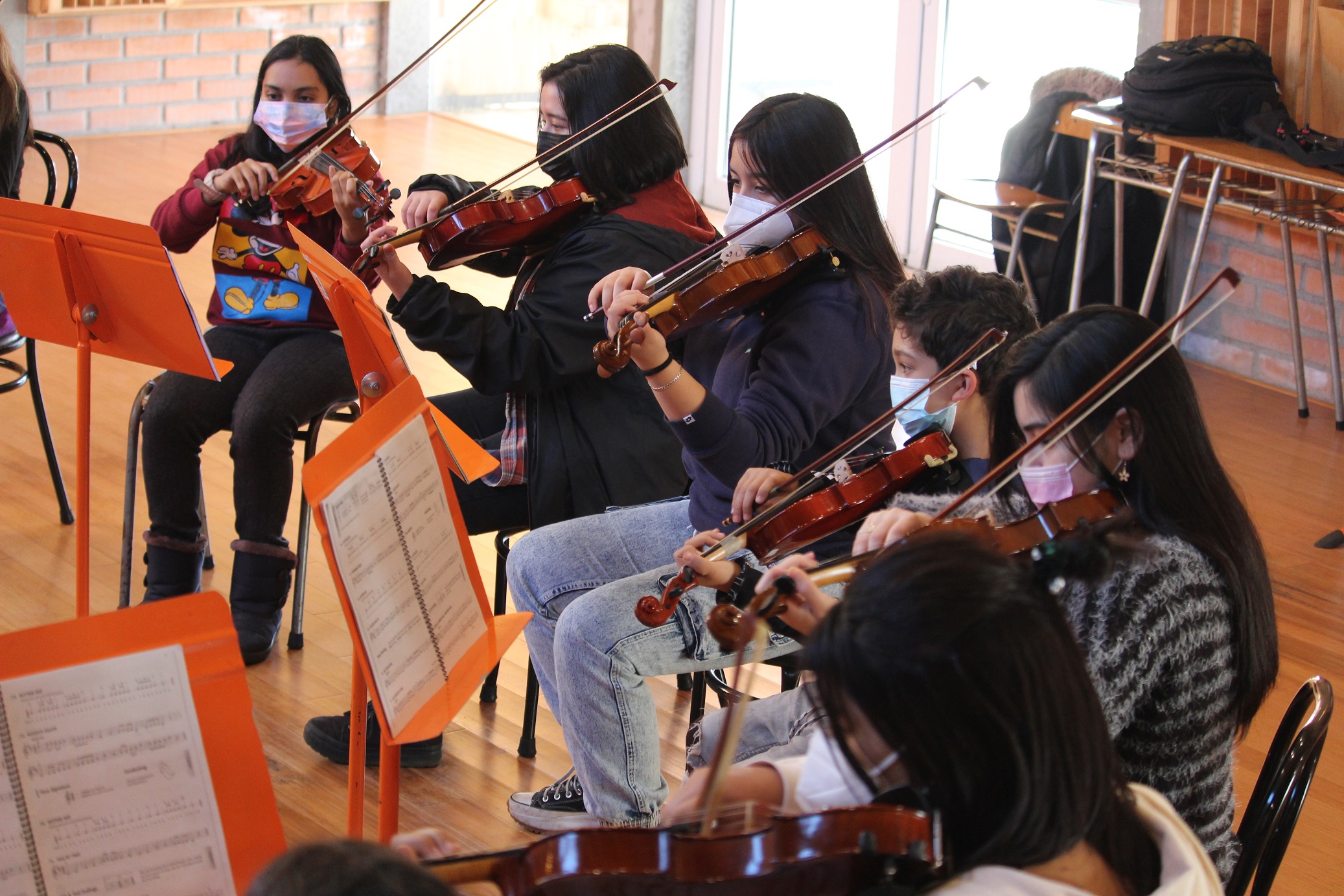 Integrantes de la orquesta que dirige el maestro Pablo Matamala tomarán clases con dos intérpretes profesionales durante cuatro días. Actividad formativa es organizada junto a Fundación Educacional Arauco y la Red Orquestando Sueños.