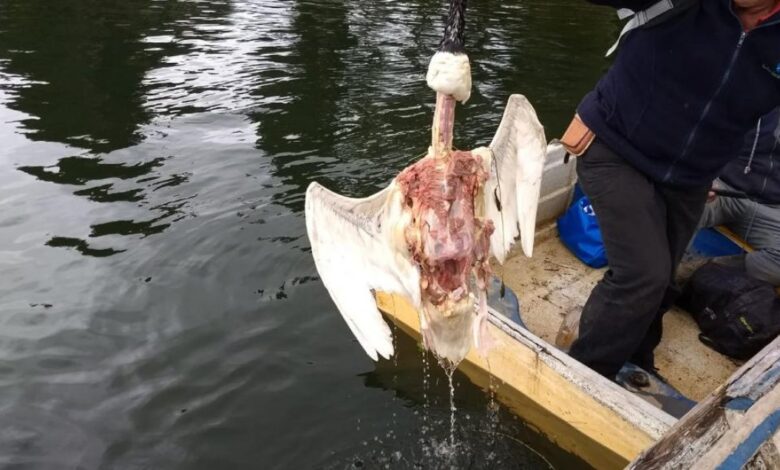 “Recorrí el humedal y encontré 8 cadáveres de cisnes con las mismas características; todos mordidos y comidos por el lobo marino”, señaló.