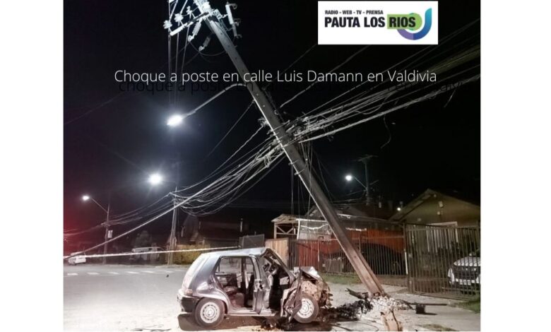 Clientes quedaron sin suministro tras choque a poste en calle Luis Damann en Valdivia