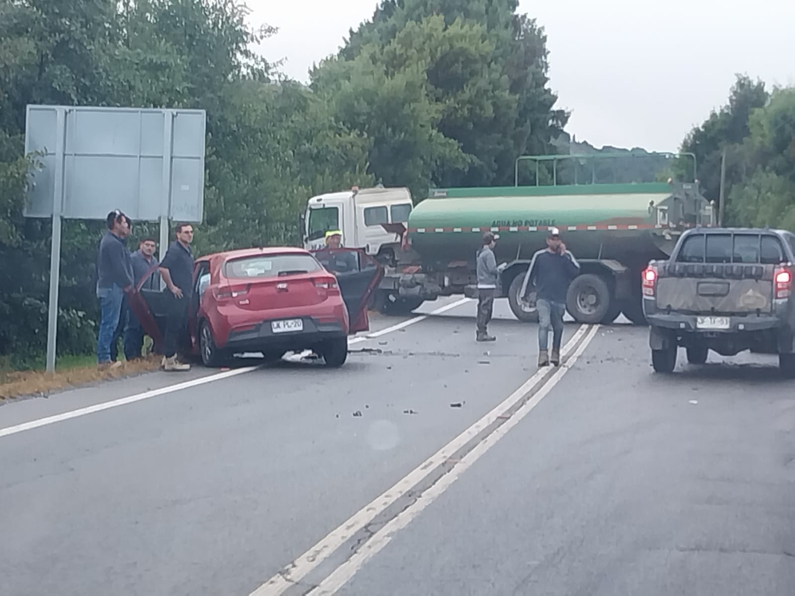 Personal policial verifica un accidente de tránsito de tipo colisión de alto impacto entre un camión y un vehículo menor, de lo que por el momento se desconoce la dinámica del accidente, quedando la conductora del automóvil atrapada inicialmente debido al impacto.
