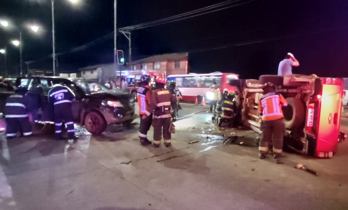 Durante la noche de este sábado se registró una colisión entre dos vehículos que dejó a dos detectives y tres civiles lesionados en Valdivia, región de Los Ríos.