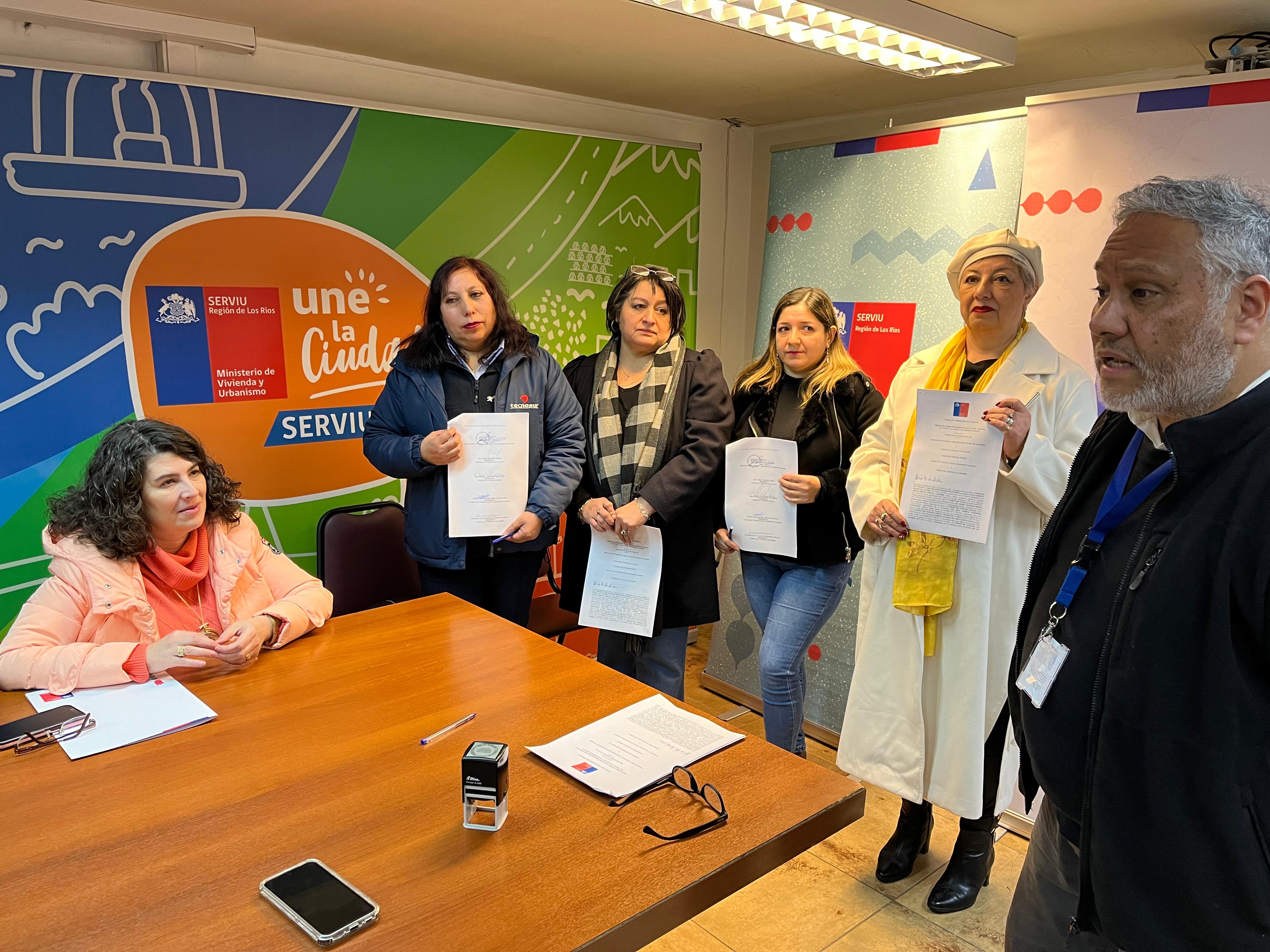 Este viernes se concretó la firma de recepción de terrenos entre el SERVIU y dirigentes de los cuatro comités de vivienda que componen el proyecto habitacional Juncos de Paillao: San Luis 2, Newen, Nuevo Amanecer Valdivia y Las Flores.