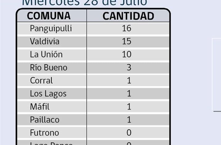 De los 48 casos confirmados por residencia en Los Ríos, 28 corresponden a casos secundarios, 15 aún están sin trazabilidad y 5 se encuentran en investigación. En tanto, a la fecha, la región presenta 48.629 casos acumulados, de los cuales 428 corresponden a casos activos, 47.621 a personas recuperadas y 580 a fallecidos.