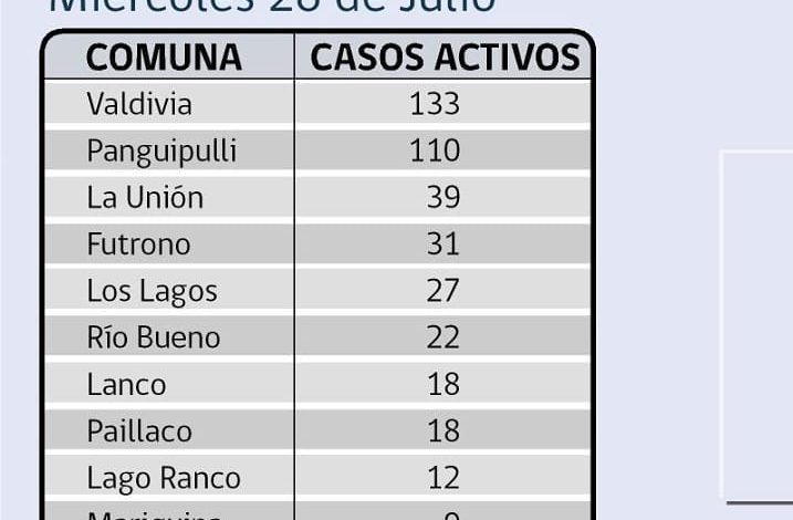 Comuna de la Unión con 10 casos nuevos para Covid-19, se informa de 2 personas fallecidas en los rios.