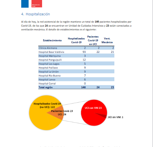 En cuanto a las hospitalizaciones, 146 pacientes se mantienen internados en distintos recintos asistenciales de la región, de los cuales 24 se encuentran en la Unidad de Cuidados Intensivos (UCI) y 23 de ellos, están conectados a ventilación mecánica. Cabe mencionar que de los pacientes internados en (UCI), 22 de ellos no han completado su esquema de vacunación.