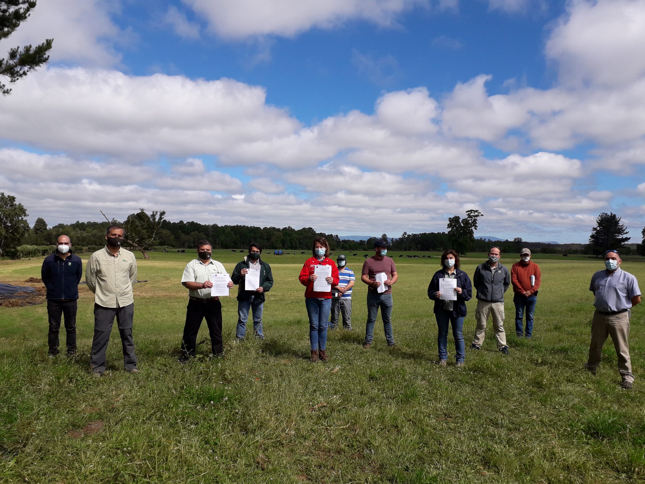 La actividad estuvo encabezada por la seremi de Agricultura Los Ríos, Moira Henzi y, junto a ella, estuvieron el director del Instituto de Investigaciones Agropecuarias, INIA Remehue, Sergio Iraira; el director regional de la Corporación Nacional Forestal (CONAF) Los Ríos, Oscar Droguett; la encargada de la línea de investigación de Cambio Climático, Yasna Rojas, más investigadores de servicios y el dueño de casa, Juan Carlos San Martin.