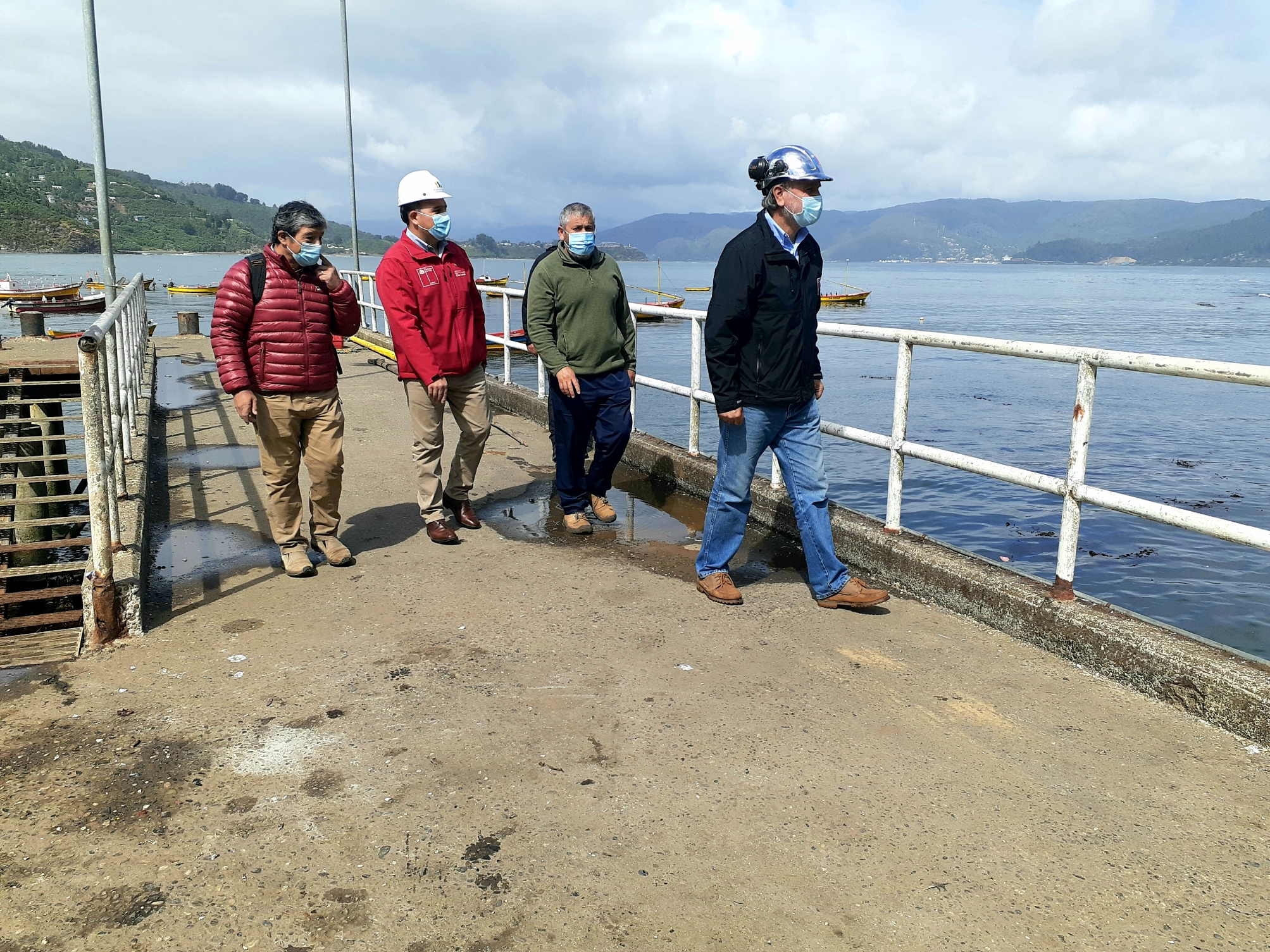 Revisaron el comienzo de la obra el intendente, César Asenjo; el seremi del MOP, Johnny Herrera; el director de Obras Portuarias, Ricardo Trigo; el presidente de la Federación de Pescadores Artesanales del Sur, FIPASUR, Marco Ide y el presidente del sindicato de pescadores de Los Molinos, José Zúñiga.