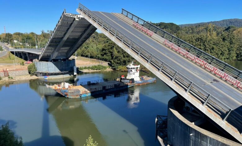 Operación de basculamiento consideró el paso de las embarcaciones Pusher Beagle que remolcó a la nave Gabarra Picton. Se trató de la segunda apertura del viaducto basculante realizada esta semana.