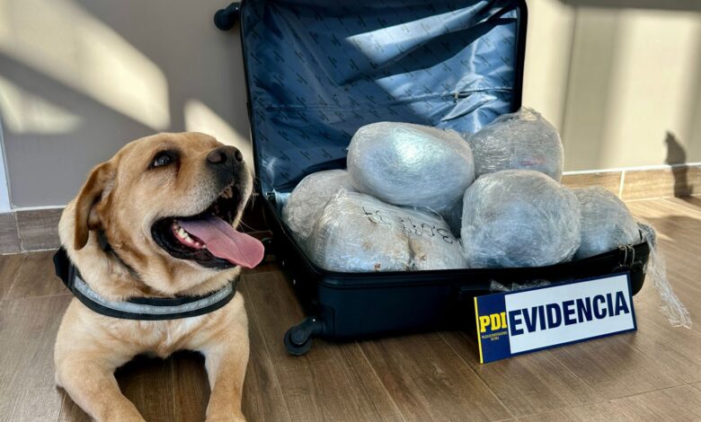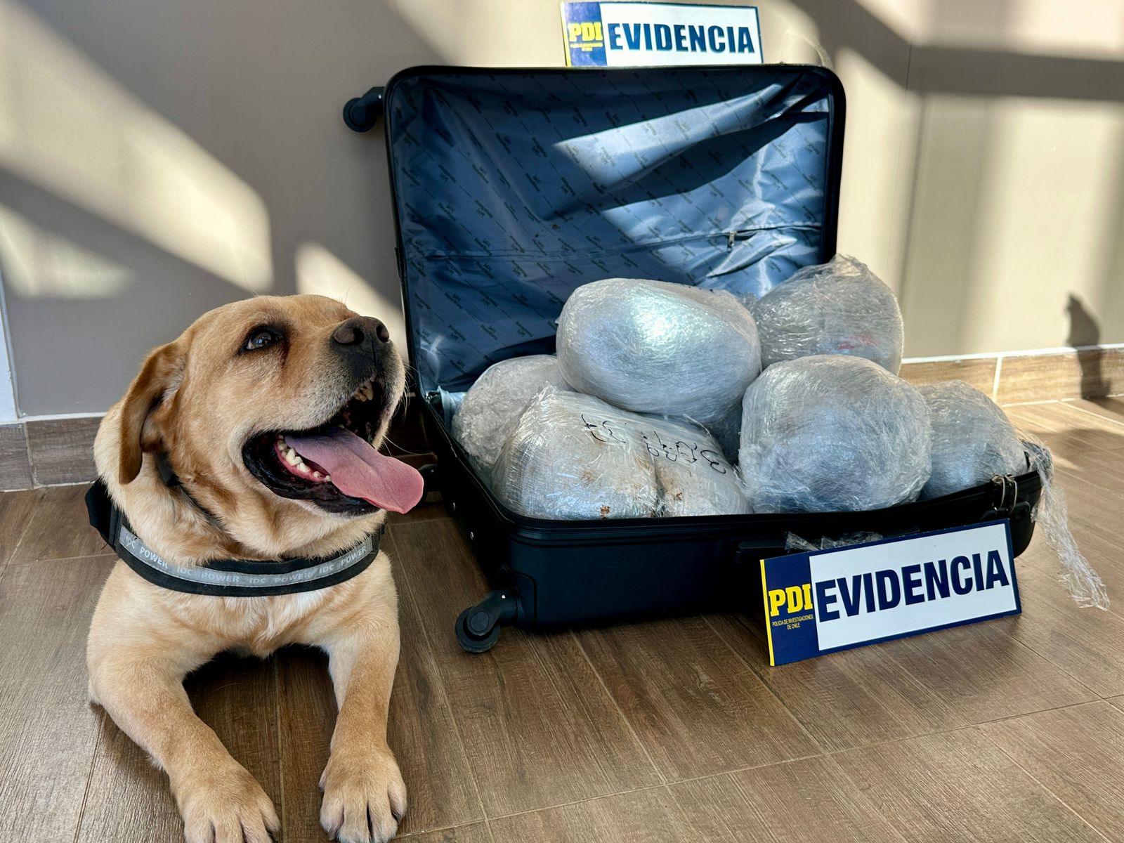 Con ayuda del can Gohan, detectives de la PDI Valdivia incautaron más de 13 kilos de drogas que ingresaban a Los Ríos