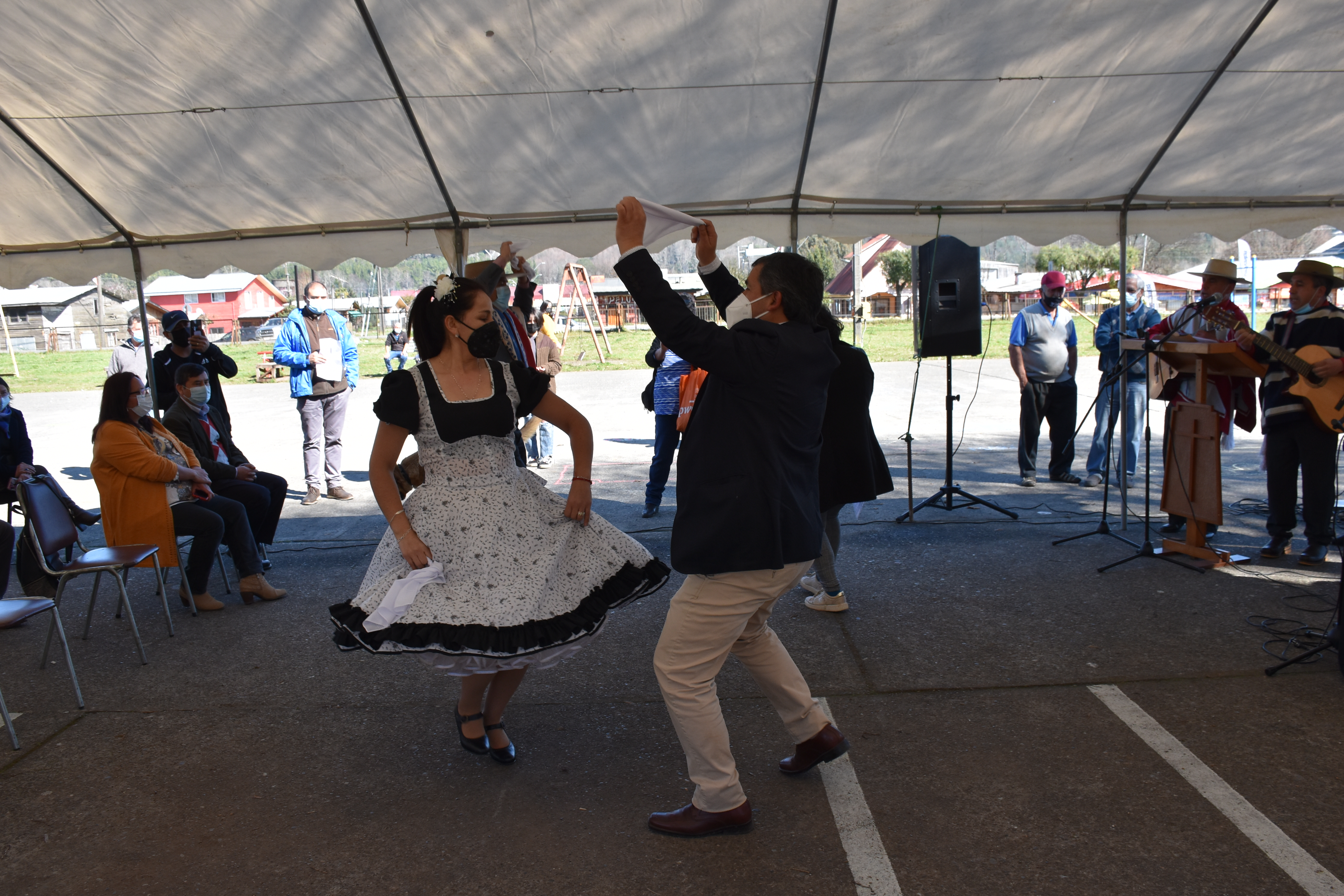 Posteriormente, la misma ceremonia se replicó en la Plaza de Malalhue, pero esta vez el esquinazo estuvo amenizado por la agrupación folclórica Antuhuenu.