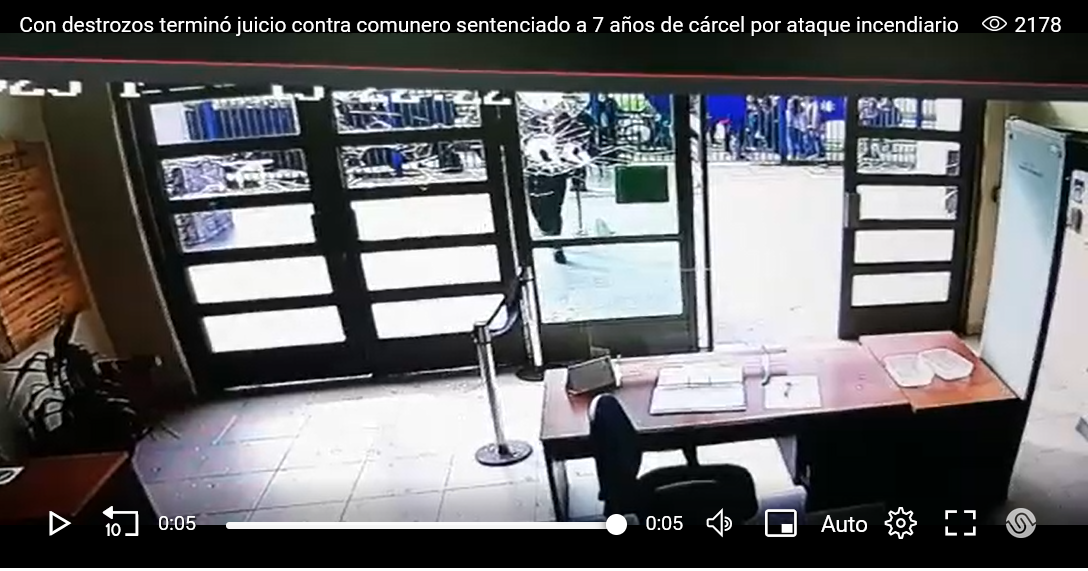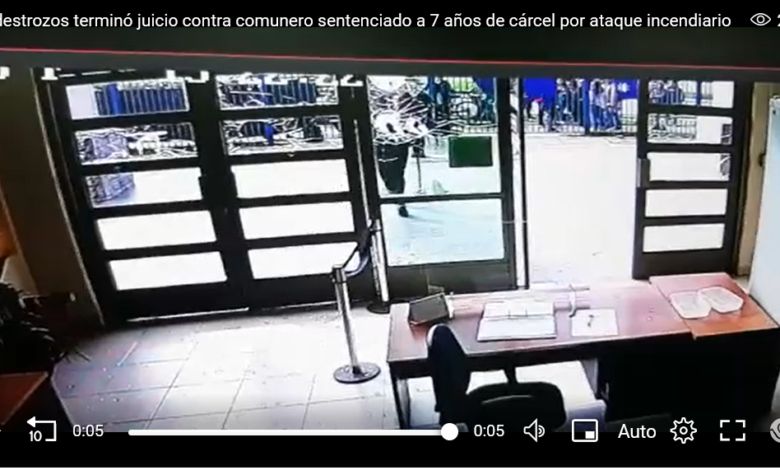 Con destrozos en el acceso principal a las dependencias del Tribunal de Juicio Oral en lo Penal de Valdivia, región de Los Ríos, concluyó la audiencia en que se sentenció a un comunero mapuche, condenado por un ataque incendiario cometido en 2020.