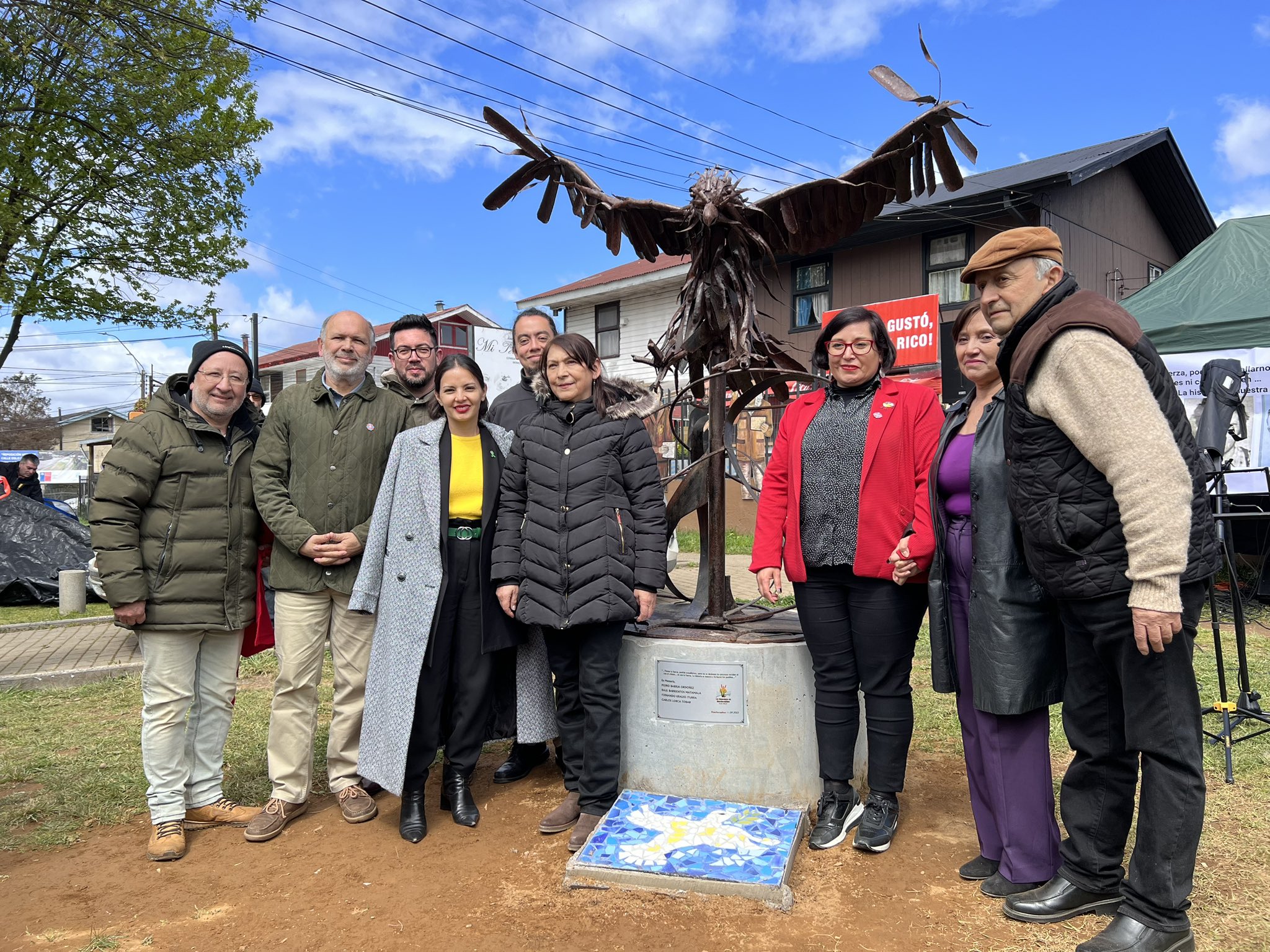 La ministra de las Culturas, las Artes y el Patrimonio, Carolina Arredondo Marzán, fue la invitada especial a la inauguración de la escultura pública, ubicada en una plazuela frente al acceso al hospital base de Valdivia. “Hoy estamos en el marco del cincuentenario, pero las conmemoraciones, los ejercicios de memoria, los vienen realizando las distintas agrupaciones y organizaciones de derechos humanos y de familiares de detenidos desaparecidos hace muchos años, incluso cuando todo estaba en contra. Hoy día lo que nos toca como gobierno, como sociedad y como un deber del Estado, es conmemorar”, señaló.